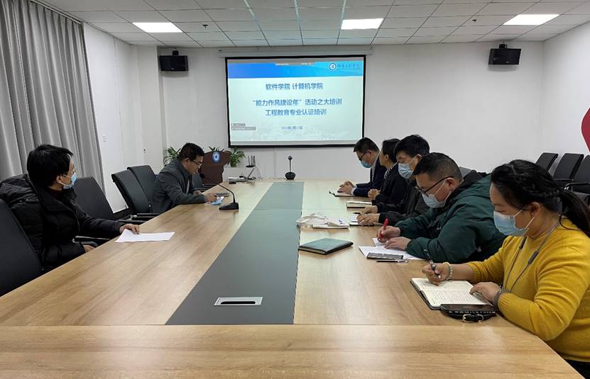 3月23日,软件学院邀请吉林大学邹淑雪博士和北京依云科创教育科技创始人杨东晓开展工程教育专业认证培训。培训会通过线上、线下相结合的形式召开,学校教务处处长刘帅霞、副处长张珺、软件学院和计算机学院班子成员、专业负责人及骨干教师参加。会议由软件学院副院长张劳模主持。