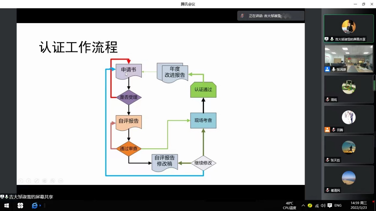 会上,邹淑雪从工程教育专业认证的工作流程、申报趋势、专业认证与院校评估的区别和联系展开解说,对专业认证标准的内在逻辑、底线要求、持续改进和课程体系等方面进行了全面阐释,对学院老师在专业认证准备过程中遇到的困难和疑惑进行了一一解答。杨东晓详细讲解了计算机相关专业基于OBE理念的一流专业建设方案,从认证专家角度解读了如何做好工程教育认证。