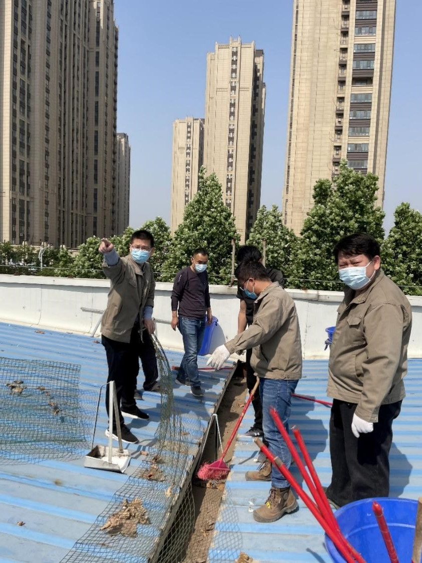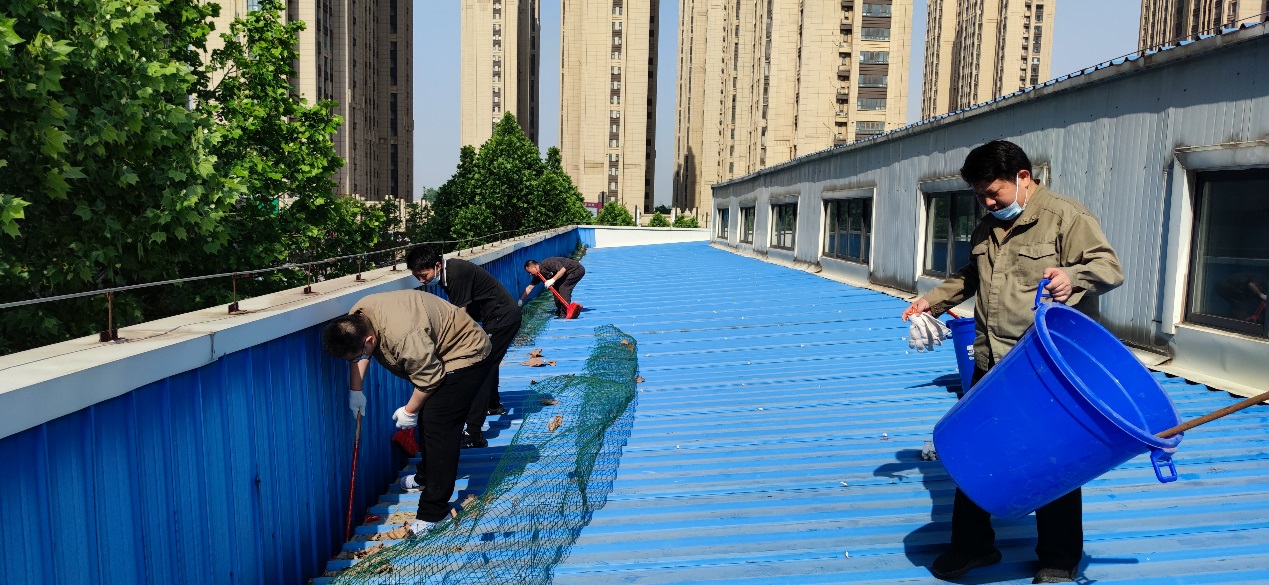 李坤全带领全体教师对房顶排水槽里面的落叶、尘土、杂物等垃圾进行了清理,确保排水管道畅通,可以有效防止大雨造成的积水漏雨,为中心安全度过夏季汛期,打下坚实基础。