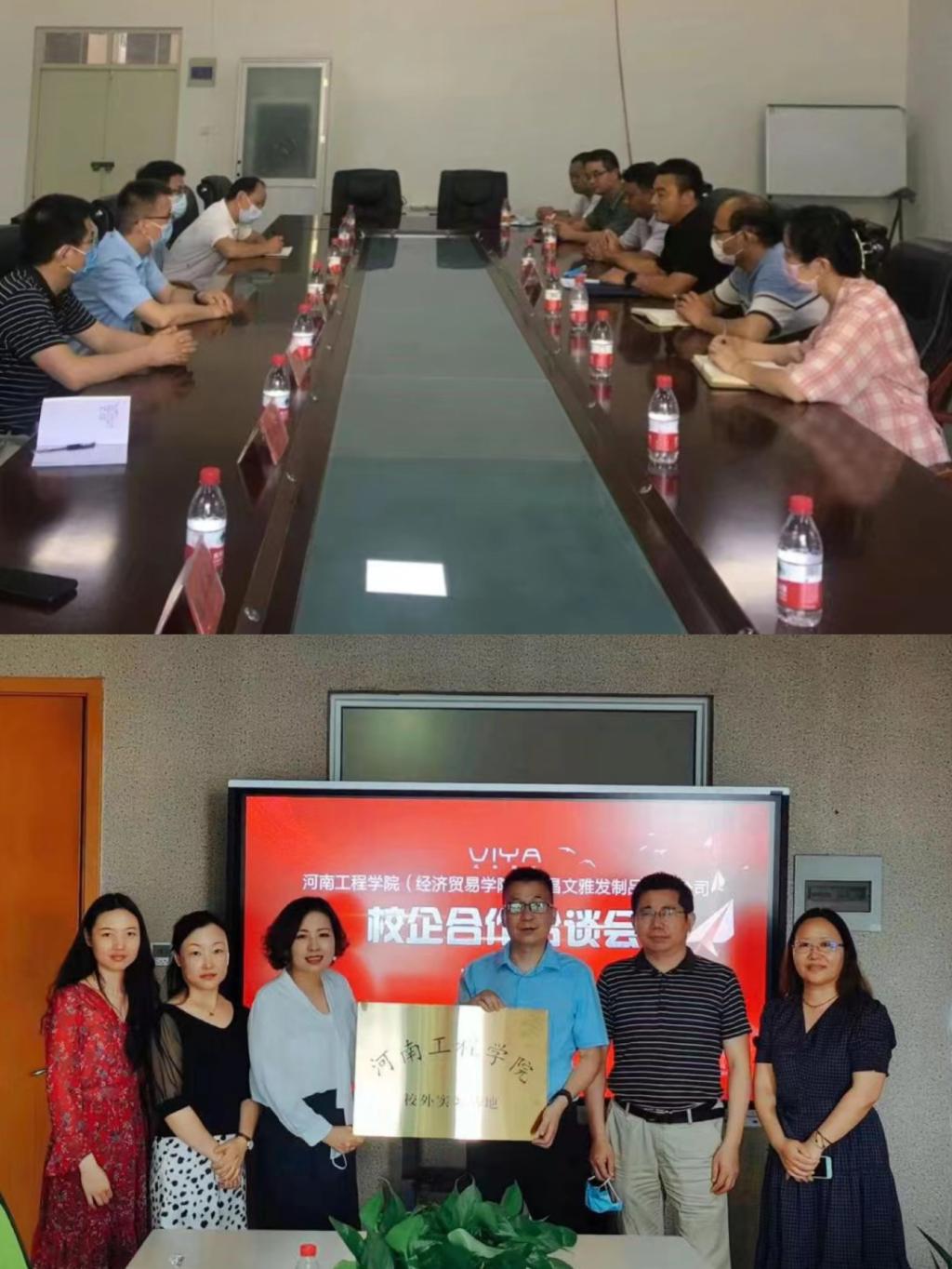 在许昌市建安区,考察团分别走访了中国(许昌)国际发制品交易市场、河南瑞贝卡发制品股份有限公司和许昌文雅发制品有限公司。在中国(许昌)国际发制品交易市场,试点负责人详细介绍了试点的市场采购贸易方式、贸易数据分析平台及许昌市发制品企业的发展情况;在河南瑞贝卡发制品股份有限公司,考察团参观了瑞贝卡产品展厅及生产车间,详细了解了产品品类、产品质量标准及海外市场分布等情况,并与人事部、技术部等部门领导就人才需求等问题进行了座谈;在许昌文雅发制品有限公司,考察团参观了公司的研发、物流、仓储、直播等部门。在校企合作洽谈会上,张建华对国际经济与贸易专业学生的校外实习岗位、就业情况及企业对毕业生满意度等方面进行了详细了解,随后双方签署了校外实习基地协议书并举行挂牌仪式。