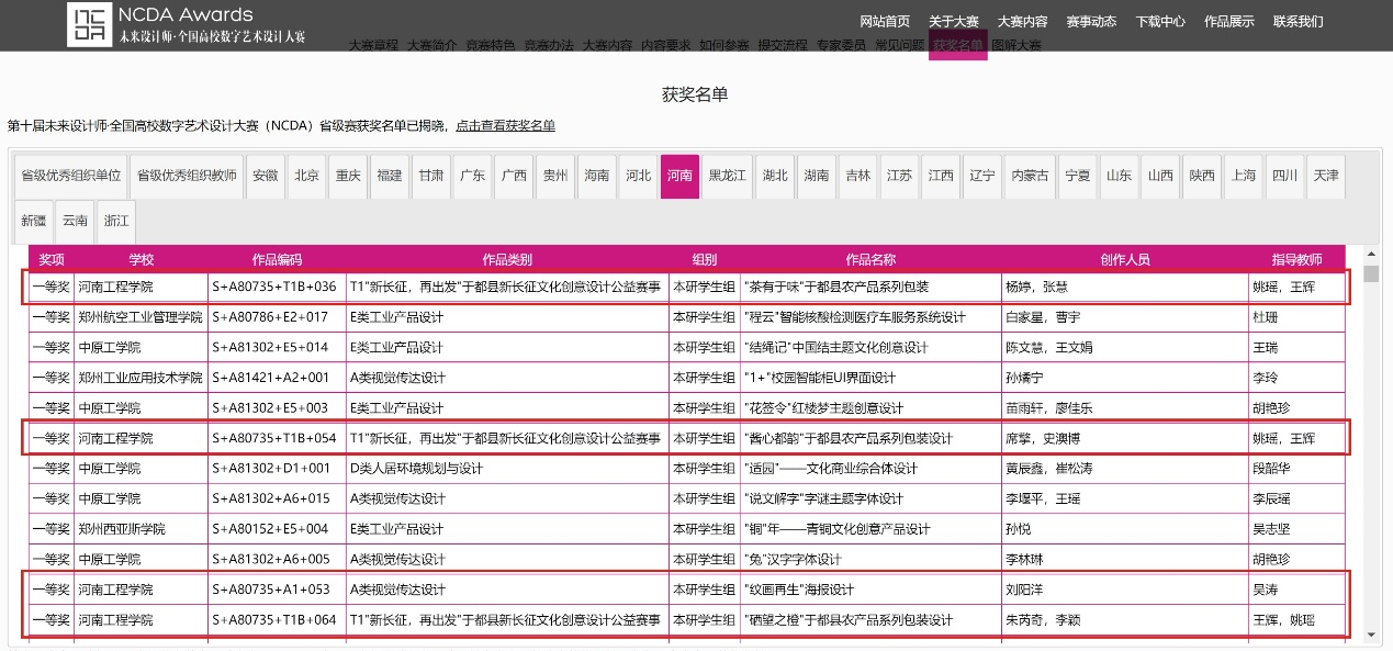 近日,由工业和信息化部人才交流中心主办的“2022第十届未来设计师·全国高校数字艺术设计大赛(NCDA)” 省级赛奖项公布,艺术设计学院师生取得优异成绩,共获一等奖13项、二等奖23项、三等奖43项。