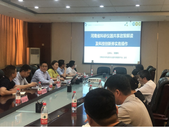 5月18日下午,河南省科研设施与仪器共享服务平台主任刘朝科、河南省科研设施与仪器共享服务平台市场部主任张红波到新葡京官网开展关于《河南省科研设施和仪器向社会开放共享绩效实施细则》和《河南省科技创新券实施细则》的政策宣讲。会议在综合楼十楼会议室召开,由分析测试中心主任张秋慧主持。科研处、实验室管理处、创新创业学院及新葡京官网理工学院科研副院长、科研办主任和教师代表参加了本次会议。