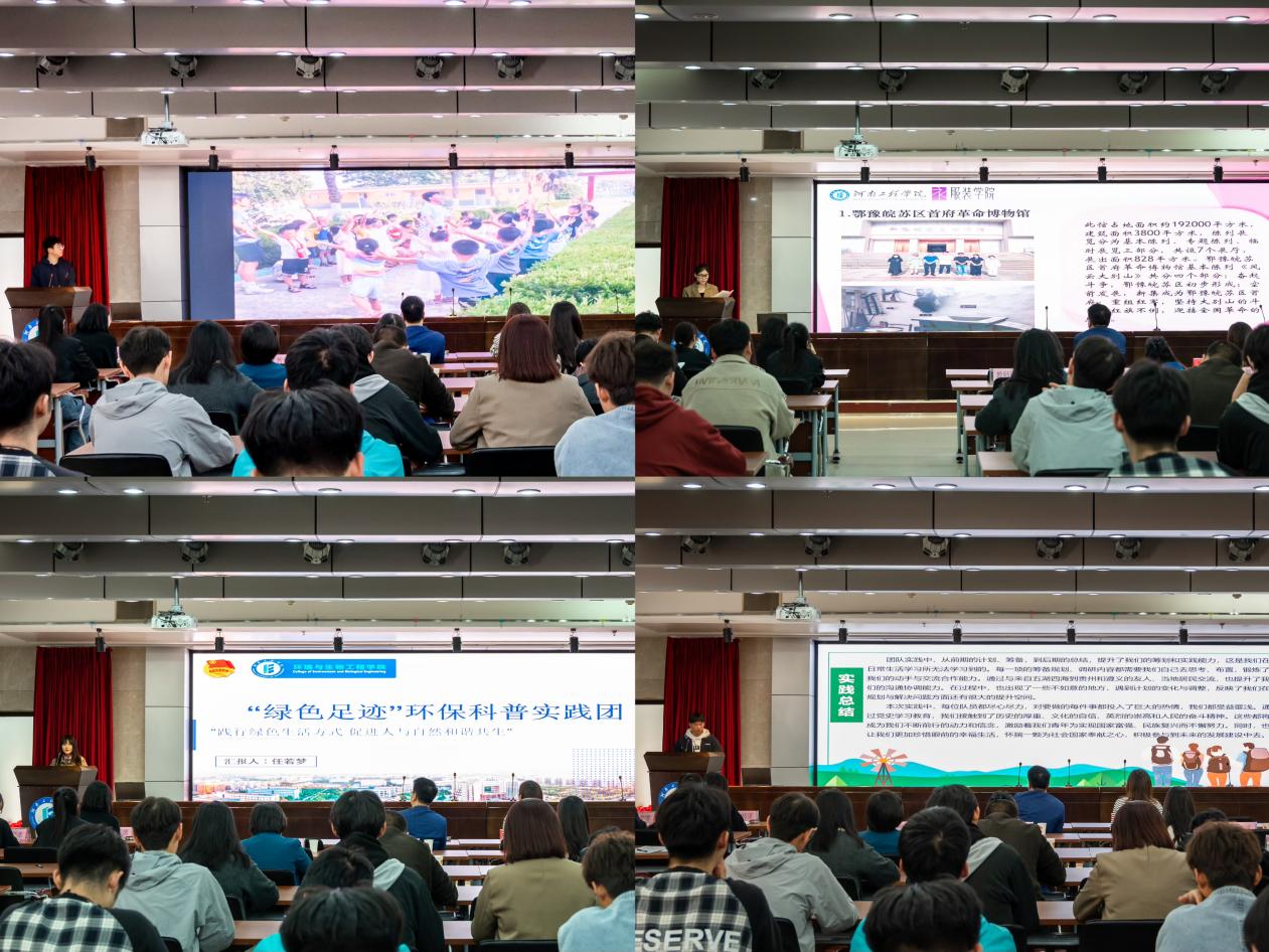 会上,校团委书记悦国宁首先带领团干部及学生代表共同学习习近平总书记“6.26”重要讲话精神。随后,“靖宇”志愿宣讲队、“井冈山精神”志愿服务队、人文政法学院“七彩假期”志愿服务队、服装学院“匠心衣道,服育未来”志愿服务队、力行书院“三下乡”社会实践团、理学院“花开半夏,青春护航”志愿服务队、计算机学院社会实践团、材料工程学院“星火”党史学习实践团、环境与生物工程学院“绿色足迹”环保科普实践团9支优秀实践团队代表依次进行社会实践分享展示,同学们从实践活动准备工作、实践内容、成果展现、心得体会等多个方面进行汇报,交流实践经验。