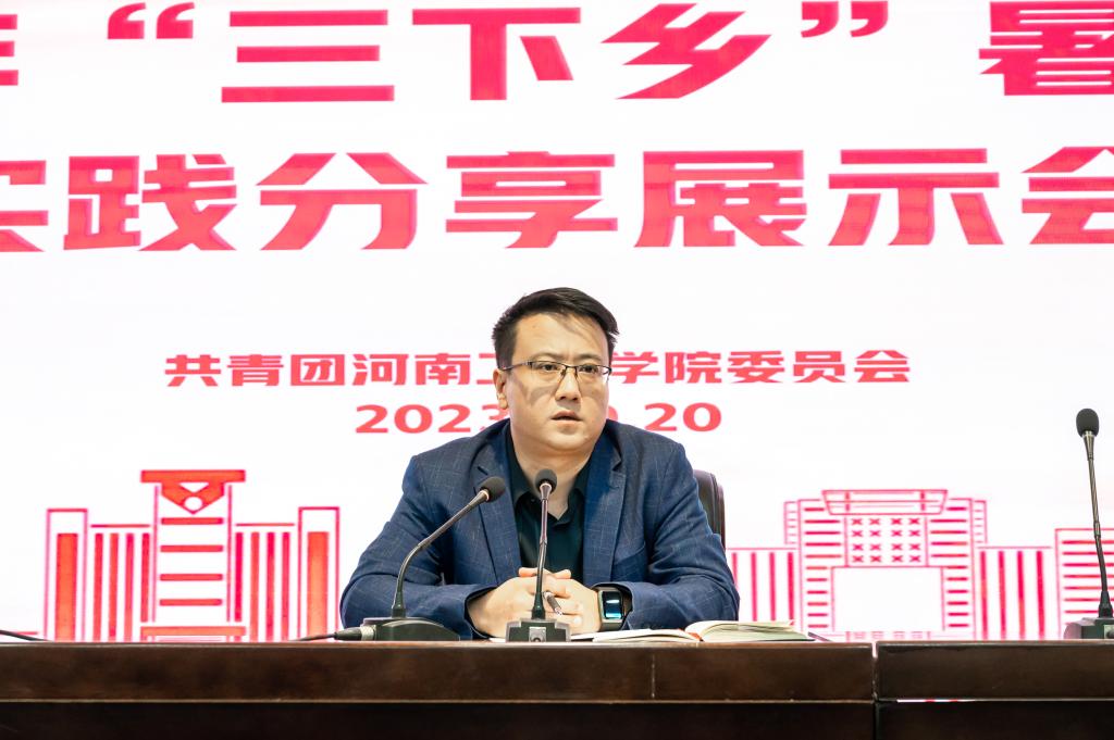 为深入学习贯彻习近平新时代中国特色社会主义思想,全面贯彻落实党的二十大精神,学习宣传贯彻团十九大精神,进一步总结暑期社会实践经验,巩固实践成果,强化育人实效,引导学生知行合一。10月20日,新葡京官网2023年暑期“三下乡”社会实践分享展示会在综合楼一楼会议室召开,校团委书记悦国宁、校团委副书记李桃丰出席会议,各学院、书院分团委书记、校团委全体工作人员,社会实践团队学生代表参加会议。