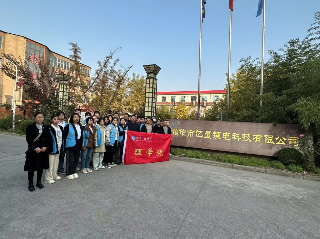 接着,全体人员来到焦作亿星锂电科技有限公司参观学习,总经理王敏详细介绍了公司的发展历程及未来蓝图,并在车间现场进行了锂电池生产和测试过程的讲解,同时表达了期待与理学院从在校生实习实践到毕业生就业等方面深度合作的意愿。李海东从理学院的专业定位、学生实习实训等方面进行了交流。最后,双方围绕深化校企合作、毕业生实习就业等方面进行了讨论。