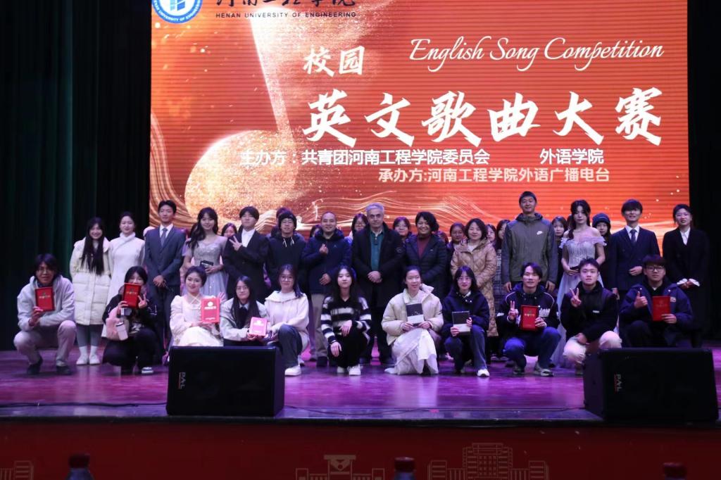 为了丰富校园文化生活,激发学生学习英语的兴趣,11月24日晚,由校团委与外语学院联合举办、新葡京官网外语广播电台承办的英文歌曲大赛在西区双创中心礼堂拉开帷幕,400余名学生观看比赛,比赛评委有外籍教师Marcelo Gameiro、外语学院夏增强、吴冬梅、崔璨、知行“一站式”学生社区育人导师张毅等老师。