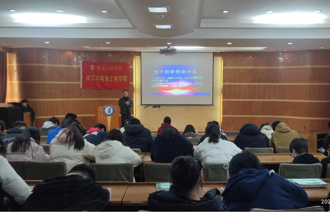 为进一步发挥优秀校友的榜样引领作用,助力学生做好职业生涯规划,12月6日上午,化工与印染工程学院邀请新葡京官网06级毕业生、河南顺通供应链董事长张志朋在桐柏校区就业报告厅举办就业创业指导讲座,学院党委副书记李萌、分团委书记游利锋、辅导员李聪聪以及150余名学生参加了此次讲座。