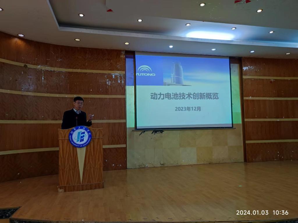 为进一步深入开展产学研合作,大力推进“融链行动”,加强产教融合,不断提升课堂育人成效,1月3日上午,深澜动力科技有限公司(宇通集团子公司)电池系统副总工程师周时国受邀到材料工程学院作“动力电池技术创新概览”专题讲座。讲座由教务办主任唐仲丰主持,副院长杨柳、部分专业老师和新能源材料与器件2241、2242全体学生参加讲座。