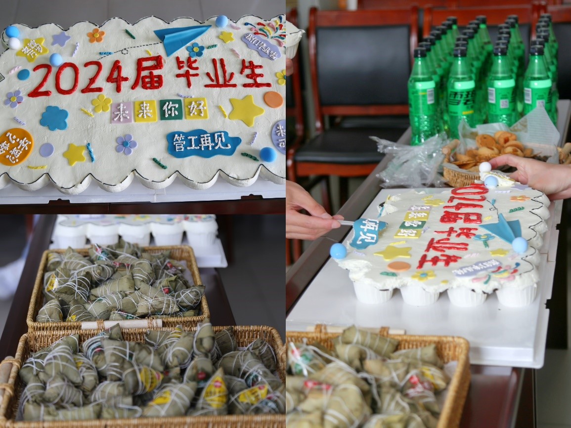 随着端午节的脚步临近,为回顾大学时光,展望美好未来,6月7日,管理工程学院在7B511举办 “浓浓端午情 浪漫毕业季”2024届毕业生欢乐聚会。院党委副书记曹冰、辅导员李飞及20余名毕业生党员参加此次聚会。座谈会由曹冰主持。