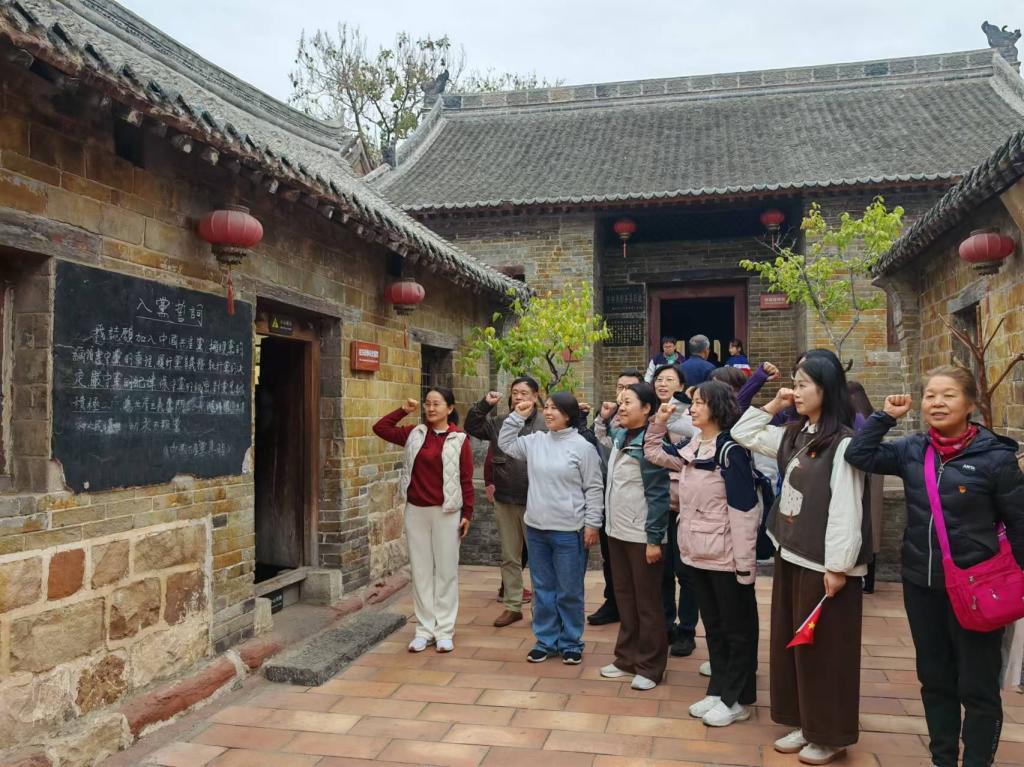 教师党员们怀着崇敬的心情踏入中共禹郏县委旧址。旧址内,一件件珍贵的历史文物、一幅幅翔实的图片资料,生动地展现了当年禹郏县委艰苦卓绝的斗争历程。大家在讲解员的细致解说下,仿佛穿越时空,回到了那个战火纷飞的年代,深刻感受到了革命先辈们坚定的理想信念和无私的奉献精神。在旧址的党旗前,全体党员整齐列队,庄重地举起右手,重温入党誓词。“我志愿加入中国共产党,拥护党的纲领,遵守党的章程……”铿锵有力的誓言在旧址内回荡,每一位党员的心中都充满了对党的无限忠诚和对初心使命的坚守。