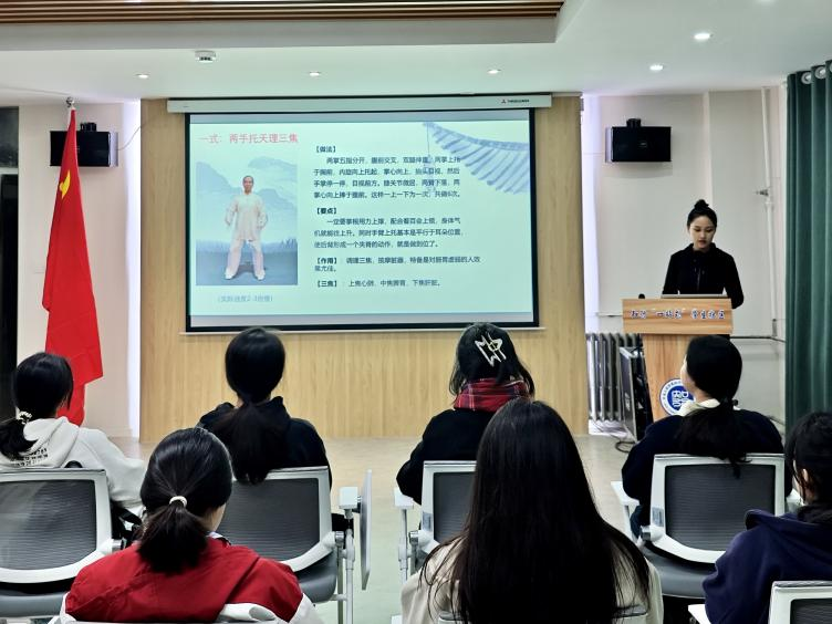 吉津慧老师首先带领学生们认识和了解八段锦的起源、基本动作和呼吸方法,并进行现场教学。吉津慧老师耐心地讲解每一个动作的要领和注意事项,确保学生们能够准确掌握。活动结束后同学们纷纷表示,通过练习八段锦,不仅身体得到了锻炼,还感受到了中华优秀传统文化的魅力。日后会将八段锦作为日常锻炼的一部分,坚持下去,不断提高自己的身体素质。