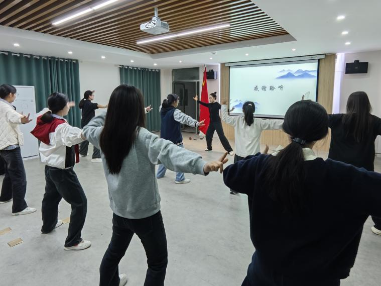 为增强大学生的体质健康和传承中华优秀传统文化,知行“一站式”学生社区于11月15日下午开展了育人工作坊第十四期——《传承八段锦,健康伴我行》活动,本期活动由社区育人导师吉津慧担任主讲人。