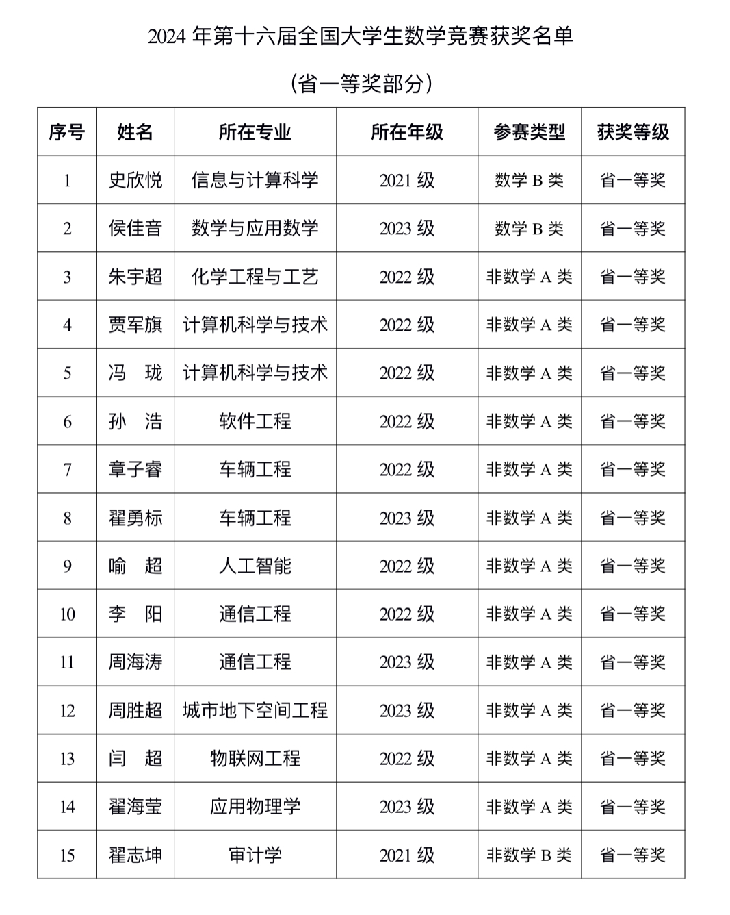 近日,由中国数学会主办的2024年第十六届全国大学生数学竞赛河南赛区获奖名单揭晓,新葡京官网来自理学院、化工与印染学院、机械工程学院、计算机学院、电气信息工程学院、土木工程学院等17个学院的234名同学参赛,共计获得河南省一等奖15项,省二等奖33项,省三等奖34项。