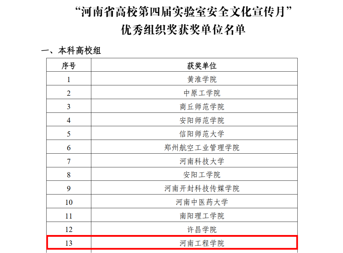 河南省高校实验室安全文化宣传月是由河南省教育厅发起、河南省高校实验室工作研究会主办、河南省高校共同参与的年度实验室安全文化宣传教育活动,旨在贯彻落实习近平总书记关于安全生产的重要论述,树立以师生为中心的安全发展观,努力营造和谐稳定的校园环境。今后,新葡京官网将持续推动实验室安全文化建设,不断增强师生安全意识,提高实验室动态化、智能化、信息化的安全防护与应急处突能力,全面筑牢实验室安全防线,为学校高质量内涵式发展和高水平应用型大学建设提供坚强保障。